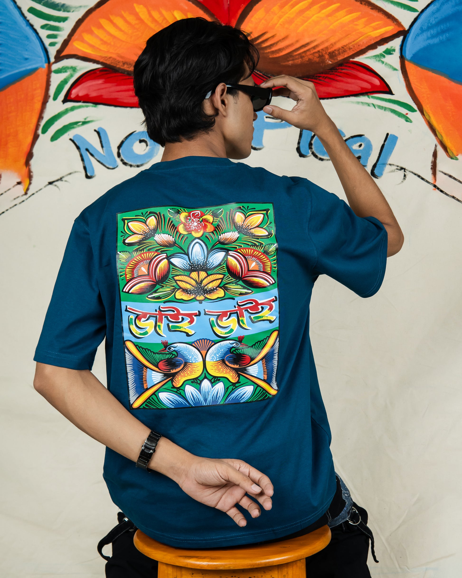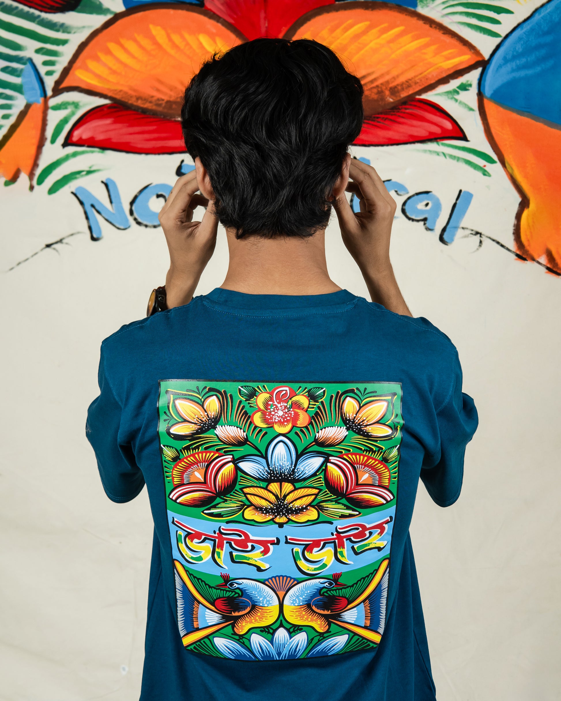 Set against a rich teal base, the design bursts with the classic colors and motifs of rickshaw artβfloral patterns, bold strokes, and iconic birds. At the center, the Bengali script βBhai Bhaiβ stands tall, symbolizing brotherhood, loyalty, and emotional bonds we share with our friends, family, and even that smile you exchange with a stranger who just helped you out. That fierce loyalty among people who call each other βbhaiβ even if theyβre not related by blood. Itβs a phrase we use with love, trust, and shared memoriesβa word that instantly feels like home.Β